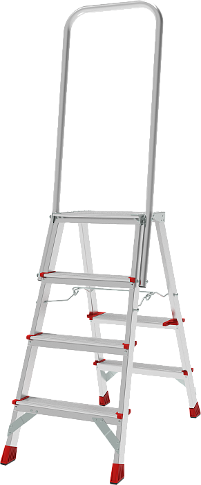 Высокопрочная стремянка с увеличенным радиусом работы и точкой опоры под рукой.