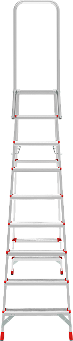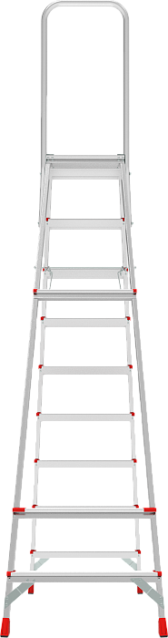 Высокопрочная стремянка с увеличенным радиусом работы и точкой опоры под рукой.