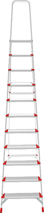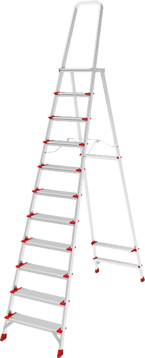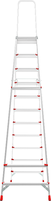 Лёгкая высокопрочная стремянка для интенсивного использования с увеличенным радиусом работы на высоте. Низкая утомляемость, высокая производительность.