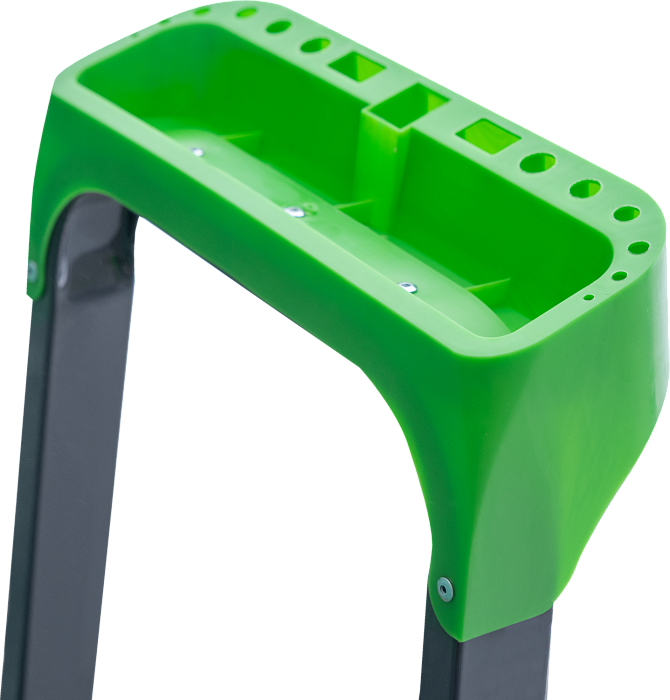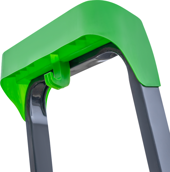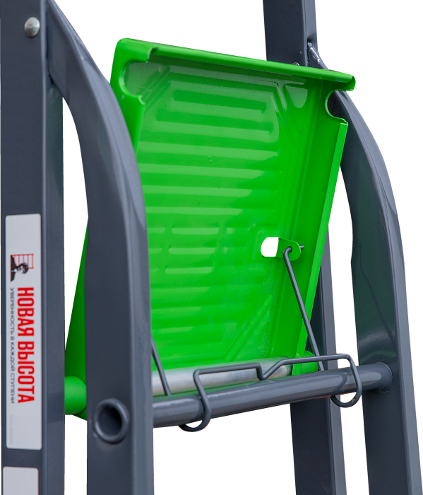 Усиленная стремянка для бытовых работ с органайзером, цельнотянутой стальной площадкой, высокой дугой безопасности и ступенями глубиной 130 мм.