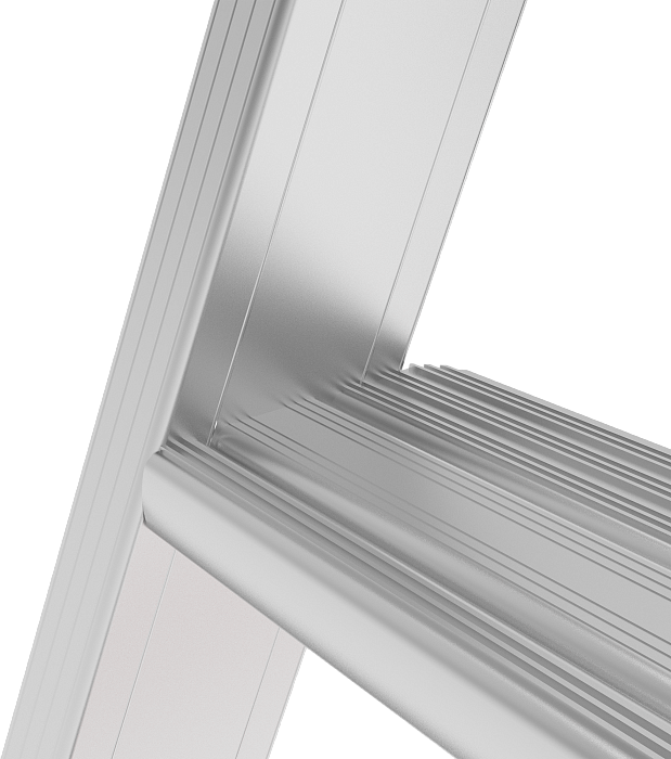 • Рифлёные развальцованные ступени 80 мм (евростандарт) с жёстким алюминиевым профилем в основании для надежного сцепления.