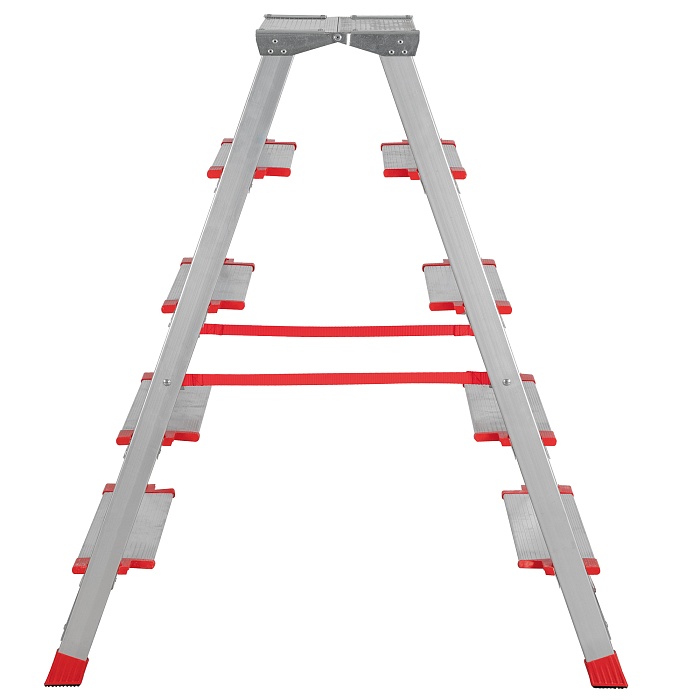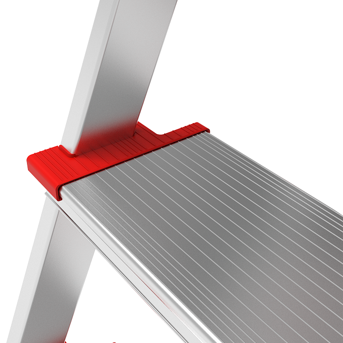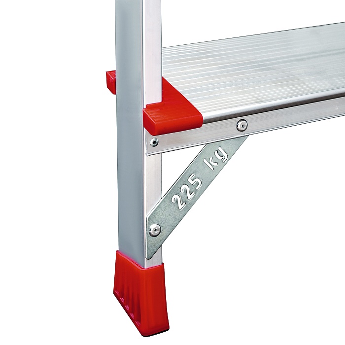 • Распорки-стабилизаторы под нижней ступенью создают жёсткую рамную конструкцию. Башмаки из 2х-компонентного пластика с прорезиненной опорой.
