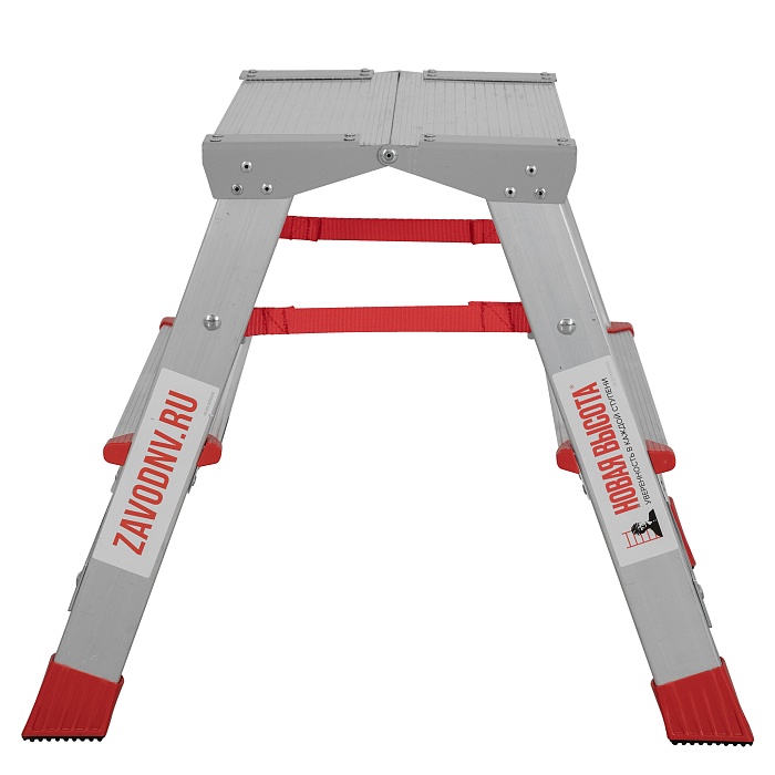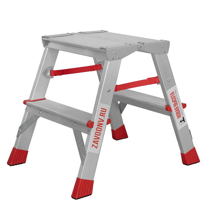 • Распорки-стабилизаторы под нижней ступенью создают жёсткую рамную конструкцию. Башмаки из 2х-компонентного пластика с прорезиненной опорой.