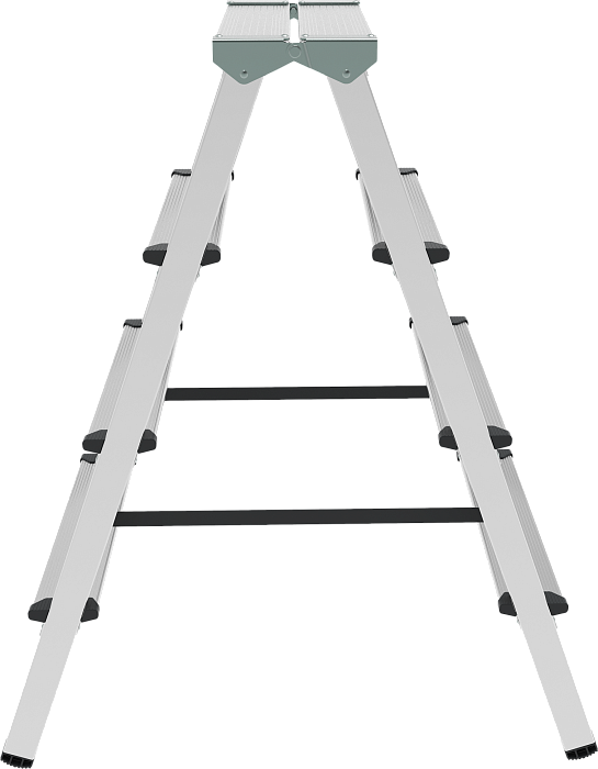 Двухсторонняя стремянка для бытовых работ дома и на даче при ремонте и уборке помещений. Широкая рабочая площадка 260х350 мм, ступени 80 мм.