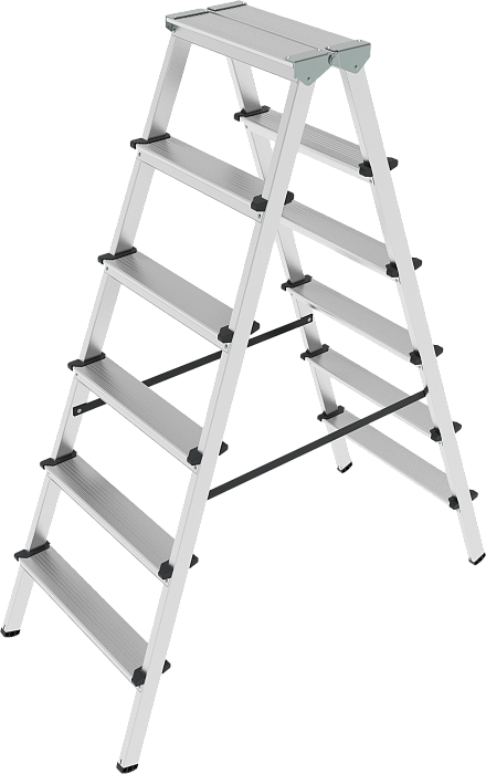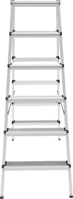 Двухсторонняя стремянка для бытовых работ дома и на даче при ремонте и уборке помещений. Широкая рабочая площадка 260х350 мм, ступени 80 мм.