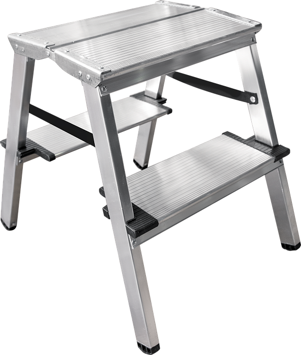 Двухсторонняя стремянка для бытовых работ дома и на даче при ремонте и уборке помещений. Широкая рабочая площадка 260х350 мм, ступени 130 мм.