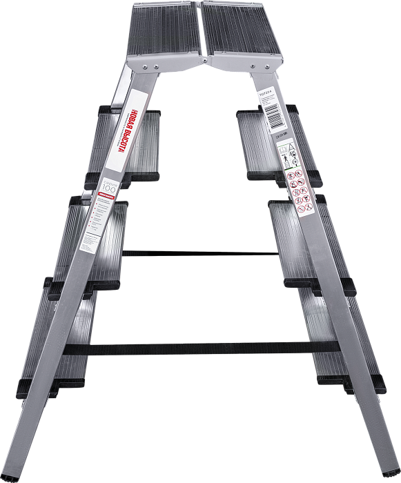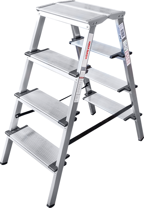 Двухсторонняя стремянка для бытовых работ дома и на даче при ремонте и уборке помещений. Широкая рабочая площадка 260х350 мм, ступени 130 мм.