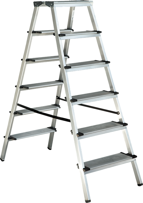 Двухсторонняя стремянка для бытовых работ дома и на даче при ремонте и уборке помещений. Широкая рабочая площадка 260х350 мм, ступени 130 мм.