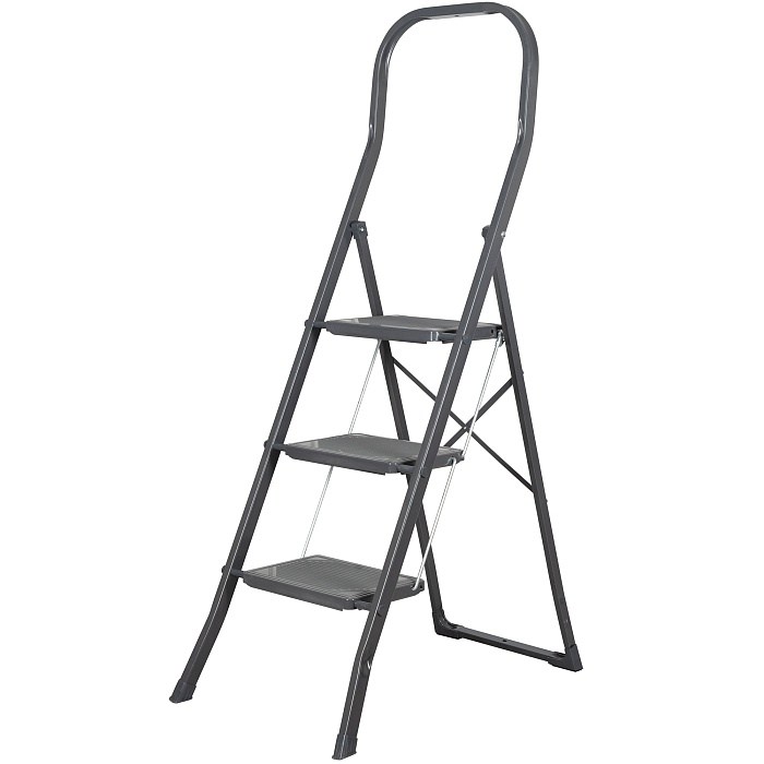 Удобная домашняя стремянка из стали для уборки и ремонта. Большие нескользящие ступени и высокая дуга безопасности