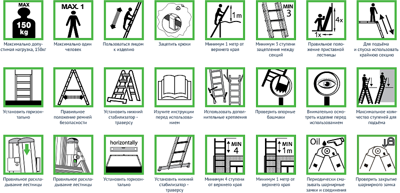 Каждое изделие имеет боковую этикетку с набором правил, выполненных в виде пиктограмм. Важно соблюдать эти простые правила для безопасного длительного использования.