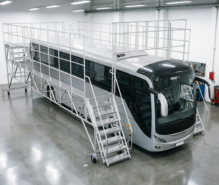 Для обслуживания и ремонта наземного транспорта, особенно с учетом растущего числа электробусов и вагонов метро с оборудованием на крыше, используется широкий спектр специализированных лестниц, трапов, переходов и платформ. Эти средства можно разделить на три основные категории.
